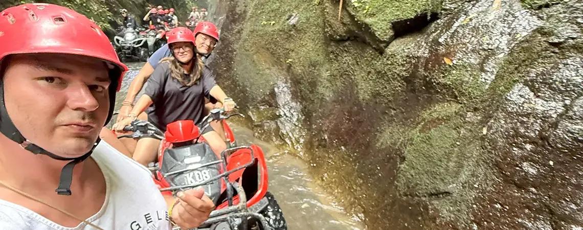 Ubytování řešíme přes booking.com – vybíráme podle fotografií, recenzí a nabízených služeb, třeba se snídaní nebo soukromým bazénem. Výlety plánujeme předem – hledáme must-see places na internetu nebo využíváme aplikaci Get YourGuide: šnorchlování, jízdu čtyřkolkou mezi rýžovými poli, výlety k vodopádům či kurzy indonéského znakového jazyka.