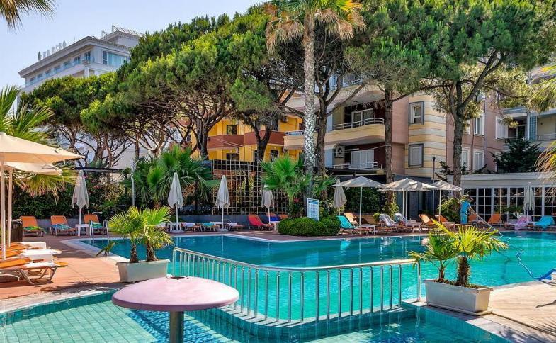 24Hodinová recepce, výtah, restaurace (albánská a mezinárodní kuchyně), bar na pláži a u bazénu, sladkovodní bazén s oddělenou částí pro děti (slunečníky a lehátka zdarma), terasa s výhledem na moře, konferenční centrum, parkoviště. . |