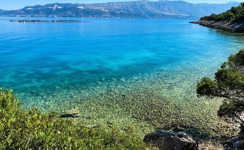 vody Jónského moře a u toho impozantní kaňon s olivovým