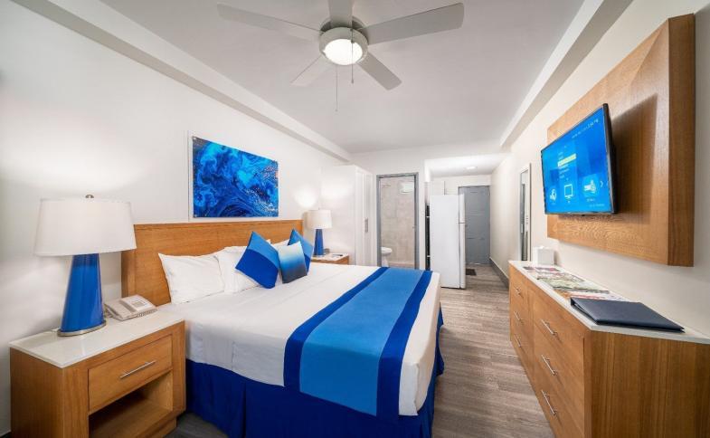 V pokojích je klimatizace, ventilátor a koupelna. Většina pokojů má balkón s krásným výhledem. Pokoje mají dvoulůžkovou postel nebo kingsize manželskou postel. Je tady sejf, navíc je k dispozici kuchyňský kout s ledničkou, mikrovlnnou troubou a varnou konvicí/kávovarem. Hosté mají k dispozici sadu na žehlení. K základnímu vybavení patří připojení k internetu, telefon, televize, rádio a WiFi. V koupelnách je sprchový kout a vana. Také je tu vysoušeč vlasů.