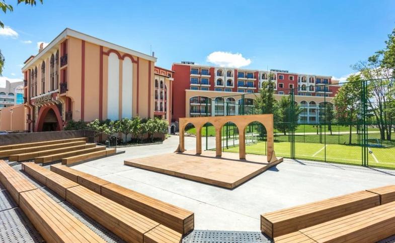 Hotel se nachází na okraji klidného letoviska Pomorie pouze pár kroků od písečné pláže. Centrum Pomorie s restauracemi, bary a obchůdky v docházkové vzdálenosti. Letiště Burgas je vzdáleno necelých 10 km.Vybavení