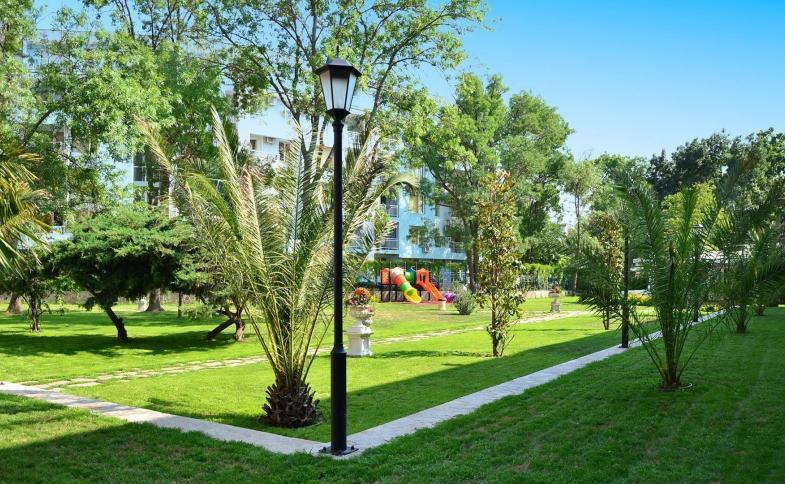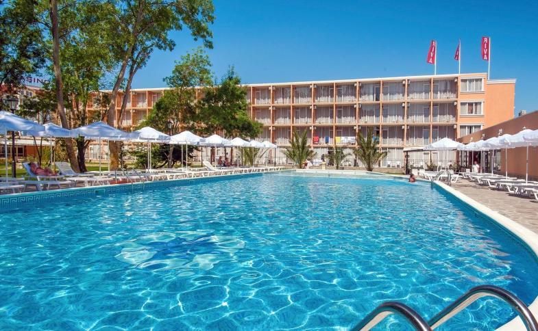 Rodinný hotel se skládá ze 3* a 4* části se společnými službami, je umístěn v zahradě nedaleko pláže a rušného zábavního centra letoviska, cca 800 m od aquaparku Action a 30 km od letiště Burgas. Do blízkého historického městečka Nessebar jezdí pravidelně MHD a turistický minivláček (za poplatek).