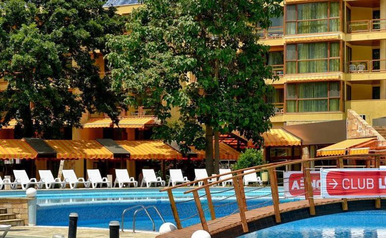 V bohaté zahradě mezi středisky Primorsko a Kiten (cca 2 km, v hlavní sezoně hotelový minibus za poplatek).