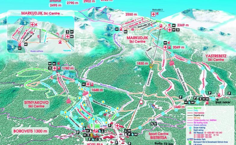 | - spolu s Banskem největší a nejznámější lyžařské středisko v Bulharsku, situované ve vyšších polohách, než Bansko, na severním svahu pohoří Rila mezi starými borovými lesy#- historie Borovce sahající až na přelom 19. a 20. století, kdy zde postavil bulharský princ Ferdinand tři vily a loveckou chatu uprostřed lesů pod masivem Musala#- nádherná krajina s dominantní horou Musala, s 2.925 m n. m. nejvyšší v Bulharsku i na celém Balkánském poloostrově#- pohoří Rila, 6. nejvyšší v Evropě, ležící v jihozápadní části Bulharska na rozhraní oblastí Kjustendil, Sofie a Blagojevgrad, od roku 1992 chráněno jako Národní park, kouzelná oblast ledovcových jezer (okolo 200) a minerálních pramenů#- moderní dobře vybavené středisko nabízející veškerý komfort alpských skiresortů s perfektními podmínkami pro všechny druhy zimních sportů - krom alpského lyžování na 58 km sjezdovek, jež jsou každodenně upravovány a mají špičkovou úroveň, mj. též skokanské můstky a biatlonové tratě#- lanovky vedoucí přímo z centra střediska pohodlně na množství sjezdovek jak pro začátečníky, tak pro pokročilé lyžaře#- vynikající přírodní podmínky - rozmanitost typů upravovaných lyžařských pist i nedozírné freeridové možnosti#- nadprůměrná přírodní sněhová pokrývka dosahující od poloviny prosince do poloviny dubna obvykle 2 metrů, přesto však 60 % pist kryto též umělým zasněžováním#- sjezdovky obsluhované dvanácti přepravními zařízeními včetně kabinky a moderních sedačkových lanovek#- příjemná začátečnická sjezdovka přímo v centru Borovce u největšího hotelu Rila#- zkušenými lyžaři vyhledávaná sjezdovka Jastrebec na západním hřebenu hor s téměř 5 km dlouhou gondolou s převýšením 1.046 metrů#- sportovní centrum "Bistritsa" v Borovci jako jedno z nejlepších běžeckých a biatlonových středisek Bulharska s 10 km perfektně upravených tras pro začátečníky i profesionály#- další oblíbené a vyhledávané trasy pro běžkaře u Široké Poljany#- bohaté zázemí pod sjezdovkami aneb skiservis, půjčovna a úschovna lyží, snowboardů a bot, stánky s občerstvením, restaurace, bary, rušný noční život#- převážně skvěle udržované hotely a čistota ve středisku harmonizující s přírodou nejkrásnějších bulharských hor |