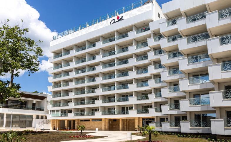 V centru letoviska Albena, v okolí promenáda s restauracemi a obchody. Letiště Varna vzdálené 40 km.