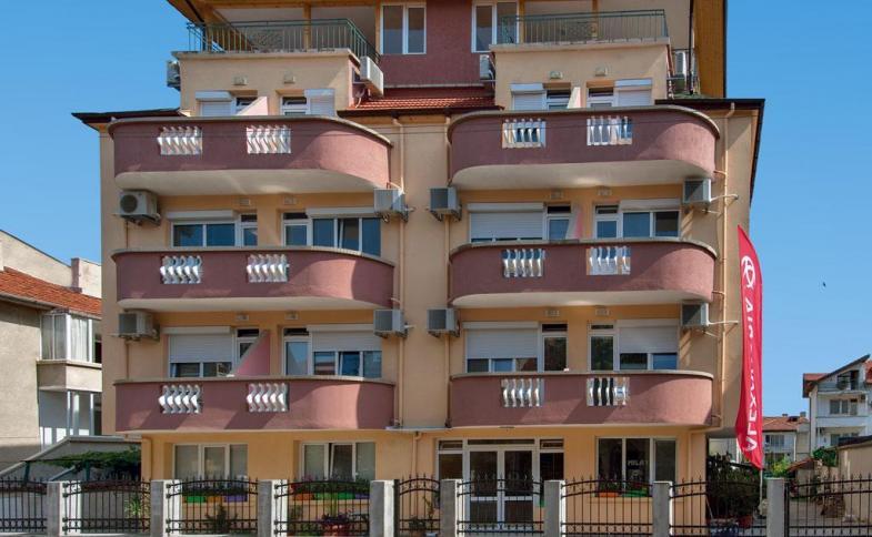 | Pokoje s balkonem a sociálním zařízením (sprcha, WC) jsou klimatizovány (klimatizace za poplatek, platba v místě pobytu po příjezdu, orientační cena 6 BGN/pokoj/den) a jsou vybaveny TV/SAT, Wi-Fi (zdarma), chladničkou a varnou konvicí. Možnost tří přistýlek. Maximální obsazenost čtyři dospělí a jedno dítě. |