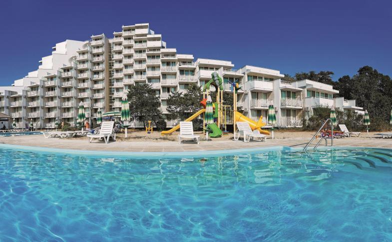 Hotel Mura Beach je vyhledáván pro svoji polohu u krásné písčité pláže s pozvolným vstupem do moře s lehátky a slunečníky na pláži zdarma. Hotel nabízí 184 pokojů. Centrum Albeny s možností nákupů, barů, restauracemi je vzdáleno 900 m od hotelu. Velkým lákadlem pro rodiny s dětmi je aquapark nacházející se cca 1 km od hotelu. Nedaleko se také nachází přírodní rezervace Baltata. Do okolí se lze snadno vydat místním turistickým vláčkem (za poplatek).