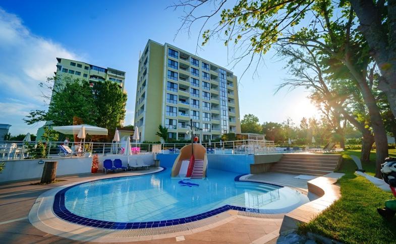 V bohaté zeleni a nedaleko rušného prázdninového centra Primorsko cca 5 min. chůze, které je proslulé velkým množstvím barů, restaurací a jiných zábavních zařízení. Hotel od písčité pláže odděluje krásná řeka, přes kterou se dá na pláž pohodlně přejít po mostě a rovněž je k dispozici hotelový přívoz, jenž klienty přes řeku přepraví. Mezinárodní letiště Burgas cca 55 km.