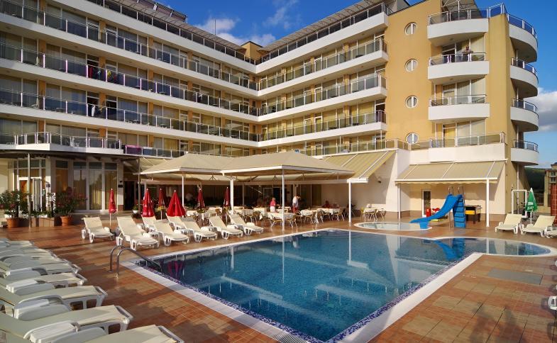 V klidnější severní části letoviska Primorsko, cca 800 m od centra, cca 200 m od písečné pláže s pozvolným vstupem do moře a cca 65 km od mezinárodního letiště Burgas.Vybavení