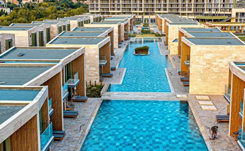 Hosté mají k dispozici 2 vnitřní a 3 venkovní bazény. Pro děti je zde dětský bazén. U bazénu je tobogán, na kterém se zabaví děti i dospělí. Na slunné terase mohou hosté využít připravená lehátka a slunečníky. U bazénu je vířivá vana, ve které se lze příjemně uvolnit a osvěžit. U bazénu je bar s drobným občerstvením. Kdo se nechce na dovolené vzdát sportu, ten si může vybrat z nabídky např. tenis. Příznivci vodních sportů mají na výběr z těchto aktivit - jet ski a jízda na banánovém člunu. Ve vnitřních prostorách objektu mohou hosté sportovat. Je zde například fitness studio. Hotel nabízí mnoho wellness programů a služeb, například saunu, parní lázeň a hammam, za příplatek pak kosmetický salon a masáže. Objekt dále nabízí živou hudbu, miniklub a minidiskotéku pro děti. Copyright GIATA 2004 - 2025. Multilingual, powered by www.giata.com for client no. 123391
