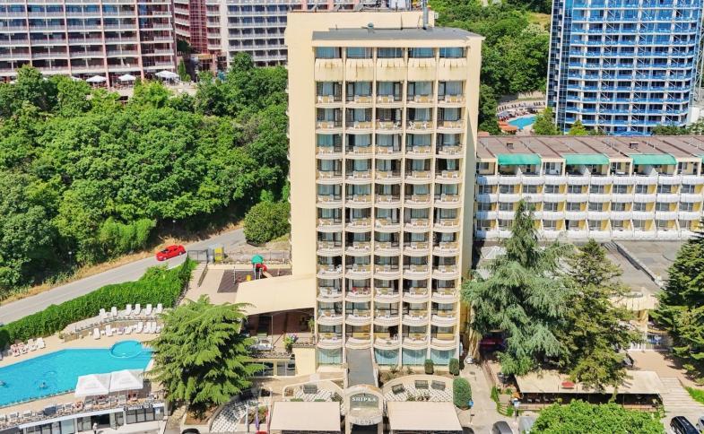 Shipka je čtyřhvězdičkový hotel s dlouholetou tradicí a nachází se nedaleko centra populárního prázdninového letoviska Zlaté písky, na dosah mnoha restaurací, barů a obchodů, a nabízí širokou nabídku služeb. Širokou a písčitou pláž, kterou omývají vlny Černého moře, najdete jen pár minut chůze od hotelu.