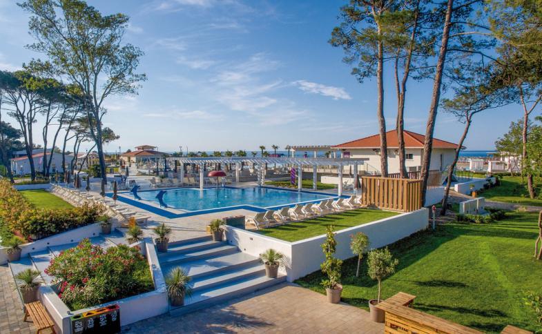 479 pokojů (spojení původně dvou hotelů), recepce, několik venkovních bazénů, lehátka a slunečníky u bazénu zdarma, restaurace (hlavní restaurace, balkánská restaurace), a la carte restaurace L’Osteria (italská kuchyně) a Olea Tavern (speciality z grilu), několik barů (Sunrise u bazénu, Sunset u bazénu, Evergreen Music Bar, Lobbyist barbar, Magnolia bar a Marley plážový bar), divadlo, oddělená Adults only část, parkování (zdarma). Součástí hotelu je i "monkey park" lanové centrum pro děti od 6-ti let (vstup cca 6 EUR, otevřeno nepravidelně v hlavní sezoně).