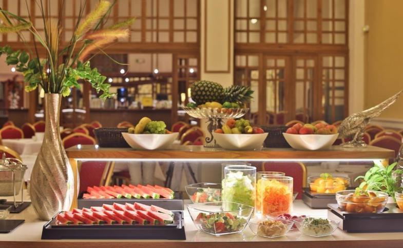 | snídaně podávané v historickém sále (teplý a studený bufet). |