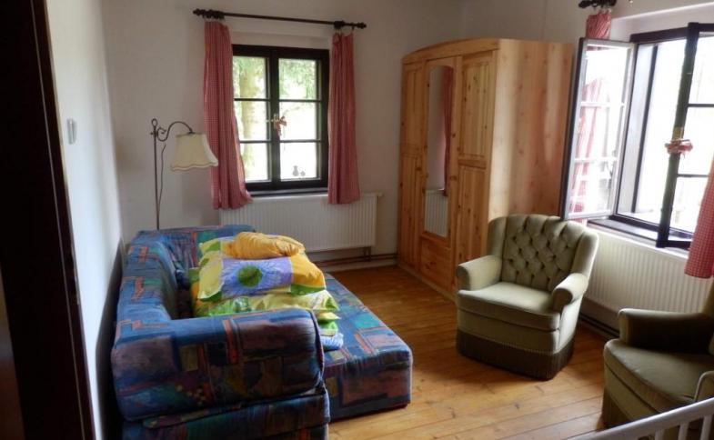wifi v ceně, vaření: elektrický sporák s elektrickou troubou, počet plotýnek: 4, typ vytápění: tuhá paliva + plyn lokální (obsluhuje host), (kachlový sporák v kuchyni a kachlová kamna v předsíni vyhřívají celý objekt.), Ohřev vody: elektrický bojler (objem: 160 l), možnost kouření: ne |