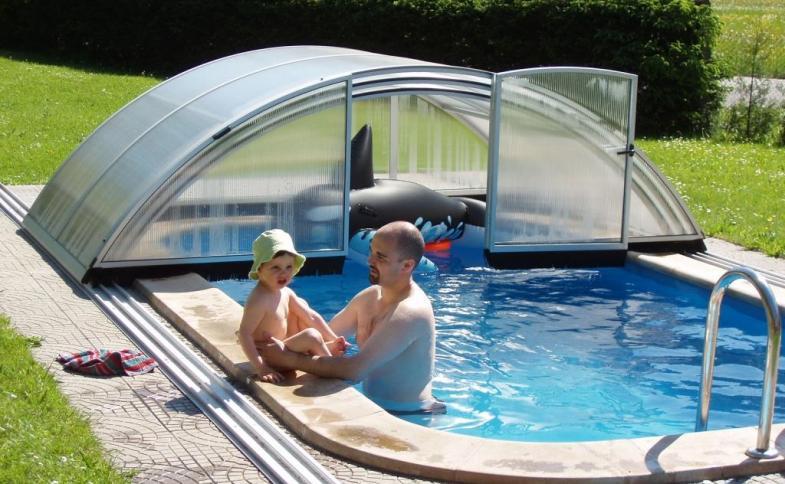 | bazén venkovní krytý (2,5 x 5 m x 1,2 m, s filtrací), lednička 2 ks
