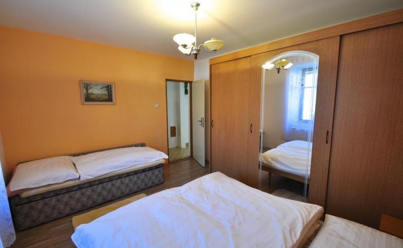 | V ložnici v přízemí 15 m2 je 1 jednotlivá postel - gauč, který se dá roztáhnout na pohodlné dvojlůžko. |
