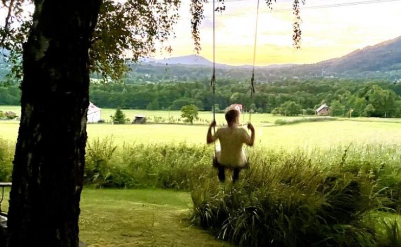 | ohniště ano, zahradní nábytek dřevěný + plastový, houpačka dětská, kóje na lyže, badminton, gril přenosný, posezení ano, slunečník, trampolína, uzamykatelný prostor pro kola, krb v domě (obýv. pokoj v příz.) |