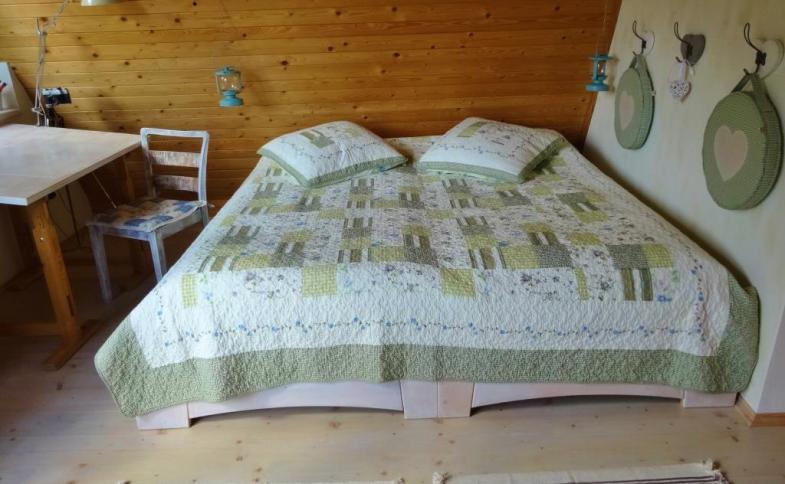 | 3 lůžka v ložnici v podkroví jsou matrace na zemi, ale pěkně