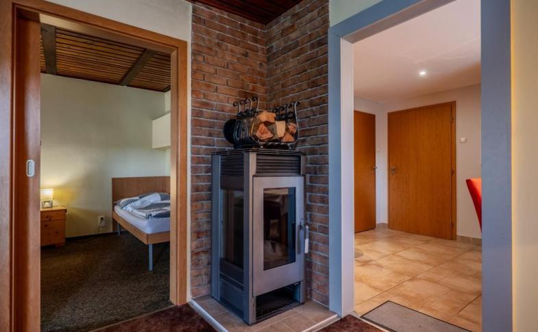 satelit, rádio, Internet pevné připojení v ceně, vaření: sklokeramická varná deska, počet plotýnek: 2, elektrická horkovzdušná trouba, typ vytápění: tuhá paliva lokální (obsluhuje host), (krbová kamna na dřevo.), Ohřev vody: elektrický bojler (objem: 120 l), možnost kouření: ne |