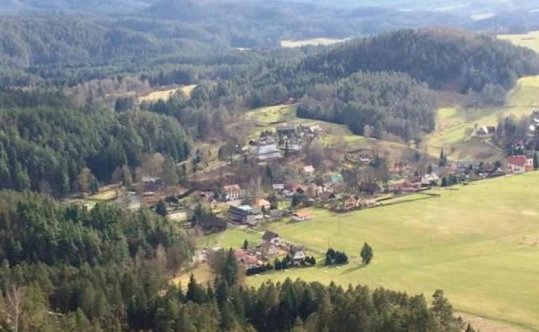 od hotelu do okolí. Sjezdovka Jedlová (Lužické hory) asi 12 km od