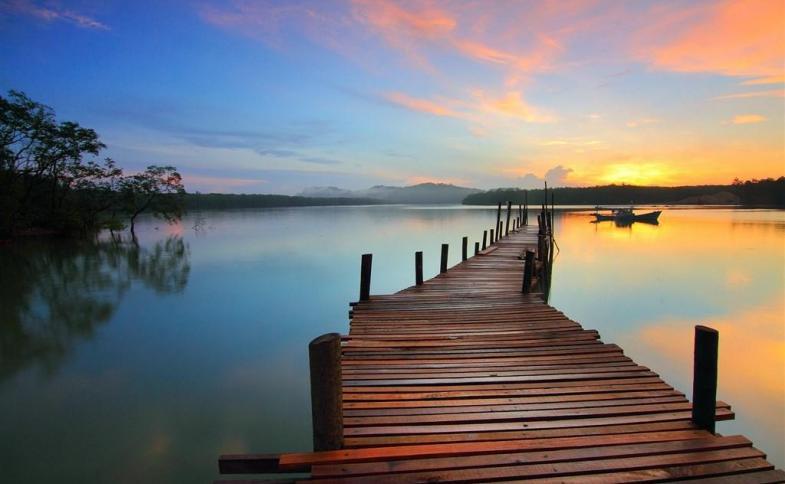 po jezeře, školu vodních sportů, půjčovnu šlapadel, lodiček