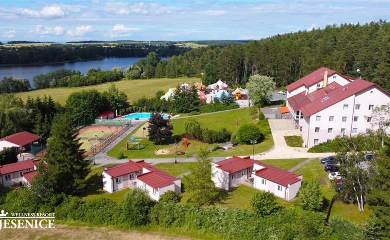 | Sportovní vyžití přímo v areálu hotelu: tenisový kurt s umělým povrchem, kulečník, badminton, stolní tenis, víceúčelové hřiště, stolní fotbal, petanque, nordic walking, úschovna jízdních kol, možnost zapůjčení elektrokola, dětský zábavní park. Pro děti: hotelový dětský koutek, multifunkční hřiště, prolézačky, skluzavky, bazén (v letních měsících), obří skákací hrad a nově i řetízkový kolotoč. V okolí hotelu Jesenice můžete navštívit hrad Křivoklát, zámek Lány, zámek Krásný Dvůr nebo železniční muzeum v Lužné u Rakovníka. Také zde můžete navštívit Skryjská jezírka, rozhlednu Tobiášův vrch nebo rozhlednu Velká Buková, Kounovské kamenné řady. |