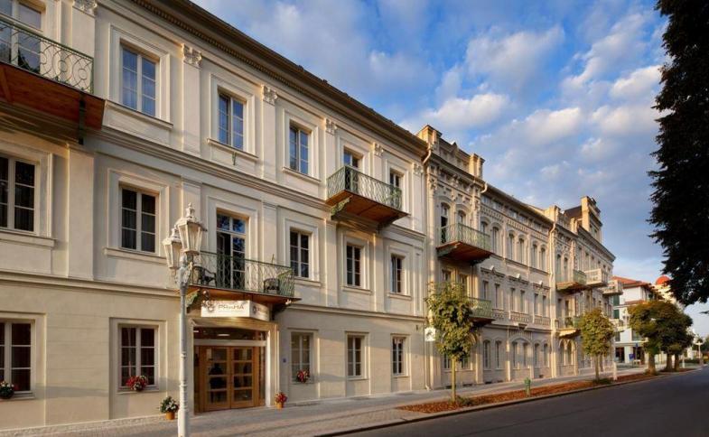 Badenia Hotel Praha*** leží uprostřed nejkrásnější části Františkových Lázní, jednoho z nejoblíbenějších lázeňských měst v České republice. Nachází se v bezprostřední blízkosti dvou největších městských parků a městského divadla a nedaleko lázeňské kolonády. Je ideálním místem pro relaxaci a načerpání sil pro ty, kteří jsou unaveni stresem a pracovním vypětím, i pro ty, kteří trpí onemocněním srdce a krevního oběhu nebo pohybového aparátu. UbytováníHosté zde mají možnost ubytování v komfortních dvoulůžkových pokojích. Součástí pokojů je LCD televize se satelitním přijímačem, lednice, telefon, koupelna se sprchou nebo vanou, fén, župan a připojení na internet Wifi. RestauraceRestaurace nabízí svým hostům nejrůznější speciality domácí i zahraniční kuchyně. K dispozi je celodenní stravování v podobě polopenze či plné penze s možností přípravy různých dietních pokrmů.Snídaně probíhají formou švédských stolů. K obědu se podává polévka, hlavní jídlo formou výběru ze 3 menu a dezert. K večeři je k dispozici polévka, výběr ze 3 hlavních jídel a salátový bufet. Wellness centrumDokonalý relax těla i duše nabízí návštěvníkům hotelu relaxační centrum s pestrou nabídkou procedur, mezi které patří různé druhy masáží, koupele, zábaly a mnoho dalších. Ve wellness je hostům k dispozici plavecký bazén s masážními tryskami a finská sauna. ParkováníSvoje vozidlo můžete zaparkovat na hotelovém parkovišti za poplatek 200 Kč / noc (u pobytu do 5 nocí) nebo 150 Kč / noc (u pobytů od 6 nocí). Rezervace parkovacího místa není možná. Františkovy LázněFrantiškovy Lázně patří ke klidnějším lázeňským městům v Západních Čechách. Jsou známé svou elegantní zástavbou, pečlivě udržovanými parky a léčivými minerálními prameny, které se využívají už od 18. století. Za návštěvu stojí: