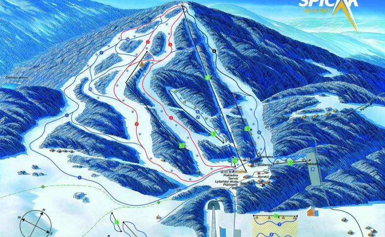| - Špičák se svým 300metrovým převýšením a sjezdovkami všech obtížností nejvšestrannějším lyžařským střediskem na české straně Šumavy#- zalesněný vrchol zdvihající se nedaleko Železné Rudy do výšky 1 202 m s pěti pestrými a dostatečně prostornými sjezdovkami obsluhovanými 4sedačkou#- neupravovaná a velmi strmá černá Šance, nejprudší svah v rámci českých hor se sklonem místy až 45 stupňů#- oblíbené výukové terény ve spodní části areálu a v jeho nejbližším okolí#- na Spodní Šanci měřený slalom, u chaty Blaženka dětský výukový park, v areálu též funpark s vlekem Lubák#- zázemí u dolní stanice lanovky s půjčovnou, úschovnou či servisem#- bezplatné záchytné parkoviště přímo u hlavní silnice mezi Železnou Rudou a Špičáckým sedlem, odkud lze na lyžích sjet přímo ke sjezdovce Spodní Šance (návrat zpět vlekem)#- možnost přijet vlakem - v rámci projektu ČD Ski poskytována sleva na skipas#- skiareál Nad nádražím v Železně Rudě velmi vhodný pro výuku nebo poklidné ježdění méně náročných lyžařů#- vlek o délce 650 m a příjemná modrá trať, pro úplné začátečníky cvičná louka Nádražíčko s figurkami a dvěma malými vleky, dětské hřiště#- od sezóny 2019/20 propojení s areálem Belvedere na odvrácené straně kopce, čímž vznikla malá lyžařská houpačka#- malý, rodinný areál Belveder se třemi sjezdovkami na okraji Železné Rudy přímo u příjezdové silnice z Klatov#- německý Grosser Arber, s 1.456 m n. m. nejvyšší vrchol Šumavy (resp. Bavorského lesa, česky Velký Javor) skýtající ještě vydatnější zážitky lyžařům všech kategorií s 11,5 km sjezdovek a 5 km ski routes#- místo, kde se jezdí i závody Světového poháru ve sjezdovém lyžování aneb alpská kvalita jen 11 kilometrů od Železné Rudy, odkud jezdí na Grosser Arber přímý skibus |