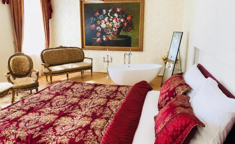 | Zámek: 2lůžkový pokoj Classic, manželská postel nebo oddělená lůžka, koupelna (sprcha, WC, fén, župany a pantofle), telefon, SAT TV, trezor, minibar, posezení, Wi-Fi (zdarma). 2lůžkový pokoj Exclusive, manželská postel, koupelna (vana, WC, fén, župany a pantofle), telefon, SAT TV, trezor, minibar, posezení, Wi-Fi (zdarma). 2lůžkový pokoj De Luxe, manželská postel, výhled do zahrady, vana umístěná v pokoji, koupelna (vana, WC, fén, župany a pantofle), telefon, SAT TV, trezor, minibar, posezení, Wi-Fi (zdarma). Konírna (moderně vybavené pokoje): 2lůžkový pokoj Exclusive, manželská postel, koupelna (sprcha, WC, fén, župany a pantofle), telefon, SAT TV, trezor, minibar, posezení, Wi-Fi (zdarma). 2lůžkový pokoj De Luxe, manželská postel, výhled do zahrady či na zámek, vana umístěná v pokoji, koupelna (sprcha, WC, fén, župany a pantofle), telefon, SAT TV, trezor, minibar, posezení, Wi-Fi (zdarma). |