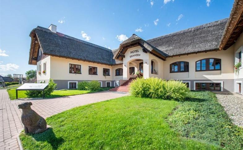 Hotel Skanzen *** leží v turistickém komplexu Skanzen Modrá nedaleko Uherského Hradiště a Velehradu. V komplexu se nachází Archeoskanzen, sladkovodní biotop Živá voda a Centrum slováckých tradic. Na turisty zde čeká bohatý program včetně naučných představení, pokusných taveb kovů, výroby keramiky, zemědělské výroby a neustále probíhajících archeologických vykopávek. V okolí je možnost navštívit krásnou oblast Pálavy a Bílých Karpat, hrad Buchlov a Malenovic, velkomoravské hradisko Staré Město, poutní místo Velehrad nebo Svatý kopeček u Mikulova. 200 metrů od hotelu se nachází DEPANDANCE SKANZEN (bez recepce), stravování probíhá v restauraci hotelu Skanzen. Uherské HradištěUherské Hradiště patří k nejvýznamnějším městům Slovácka. Proslulo bohatou historií, vínem, folklorem a živými tradicemi. Malebné historické centrum s barokní radnicí, městskými hradbami a galeriemi vytváří příjemnou atmosféru pro procházky i posezení. Nezapomeňte navštívit: