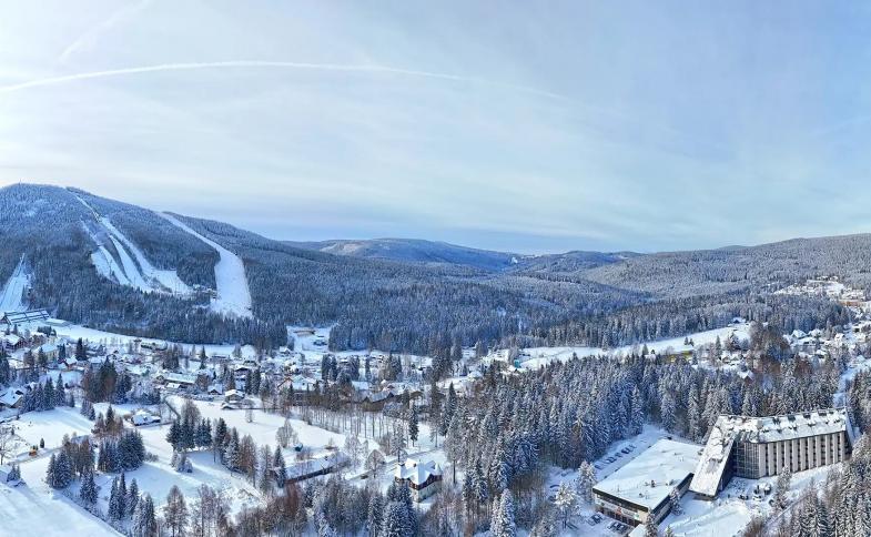 Hotel Svornost leží v Harrachově v docházkové vzdálenosti od centra i lyžařského areálu na Čertově hoře. Díky své poloze nabízí snadný přístup ke sjezdovkám, běžkařským tratím i turistickým trasám v západních Krkonoších. Hostům je k dispozici krytý bazén, sauna a restaurace s celodenním stravováním, což zajišťuje komfortní zázemí během pobytu na horách i v případě nepříznivého počasí. V okolí najdete lanovku na Čertovu horu, Mumlavské vodopády i skokanské můstky, které patří k symbolům Harrachova.