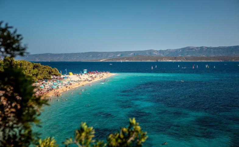 Oblázková a částečně písčitá pláž se nachází cca 100 m od hotelu, známá písčitá pláž Zlatni rat s pozvolným vstupem do moře je vzdálena cca 500 m od hotelu. Lehátka a slunečníky za poplatek.