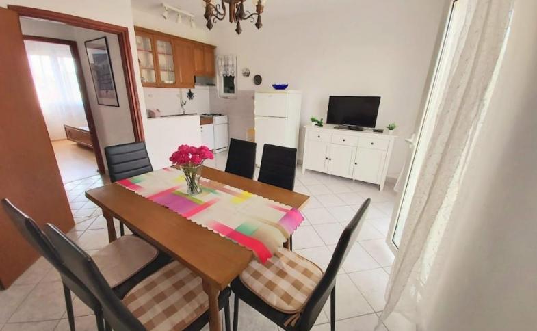 | Účelně zařízený apartmán v domě situovaném na klidném místě 250 m od oblázkové pláže. Hostům k dispozici Wi-Fi a klimatizace (v ceně). Možnost pobytu s domácím zvířetem za poplatek 7 EUR/den (na vyžádání při rezervaci). Parkování pro 1 osobní automobil na pozemku. |