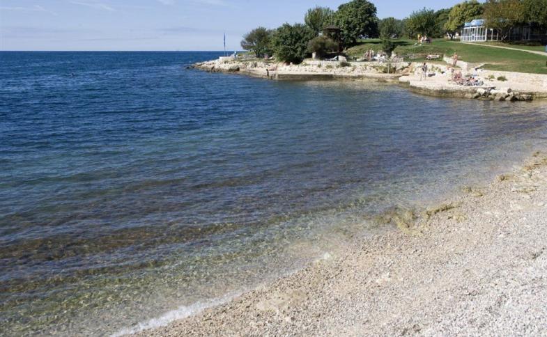 Pozvolná pláž, vhodná i pro děti, se nachází cca 200 m od hotelu přes místní komunikaci, další typy pláží po celém pobřeží střediska Zelena Laguna ve vzdálenosti cca 500 m a dále.