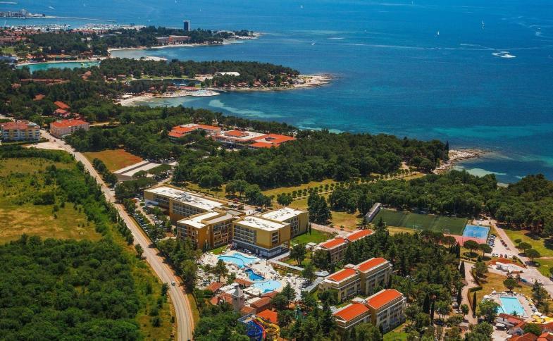 Kompletně renovovaný komplex hotelu a vedlejší budovy leží v travnatém borovicovém areálu, cca 3 km severně od centra Umagu. Do centra jezdí turistický vláček za poplatek. Hotel je vhodný pro cyklisty protože je vybavený půjčovnou i úschovnou kol.