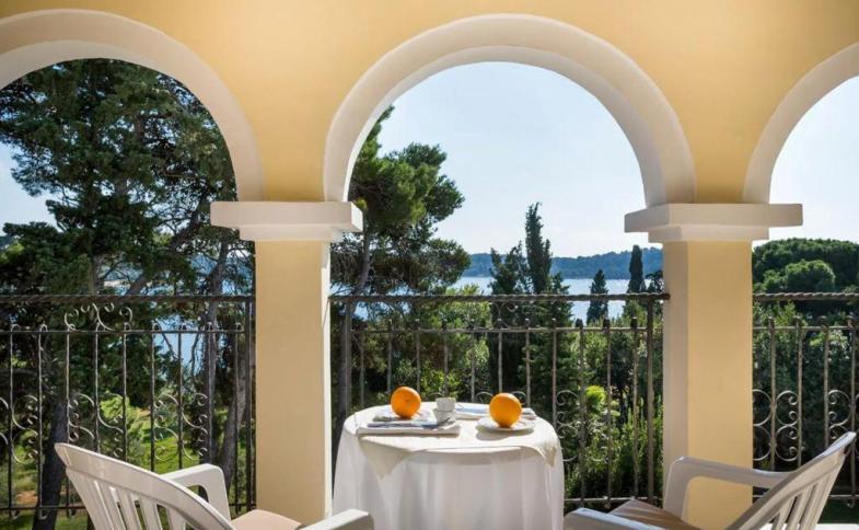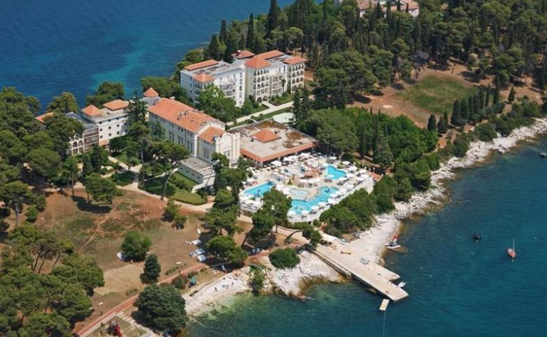 lůžkem a nacházejí se v hlavní budově. Hotelová restaurace má interiér ve stylu rakousko-uherského paláce se dřevěnými stropními trámy. Má velkou terasu propojenou s venkovním bazénem. Hotel má 3 venkovní bazény. Pro sport a rekreaci mají hosté k dispozici: tenisový kurt, hřiště na plážový volejbal, stolní tenis, střelnici, minigolf, dětské hřiště a vodní sporty. V hlavní sezoně hotel zajišťuje zábavné animace pro dospělé a děti. Miniklub pro děti od 4 do 12 let, mini disco. Pro dospělé - talent show, aerobic, aqua aerobic, zumba, pilates, jóga, živá hudba na terase. Pláže jsou především na východní straně ostrova, vzdáleny od hotelu 50-100 m, většinou oblázkové, kamenité, je zde i upravená část pláže pro děti. K venkovnímu vybavení hotelu patří 2 bazény se slanou vodou a samostatný dětský bazének. Zde jsou k dispozici lehátka a slunečníky (zdarma). V restauracích, barech a při sportovních aktivitách je možná