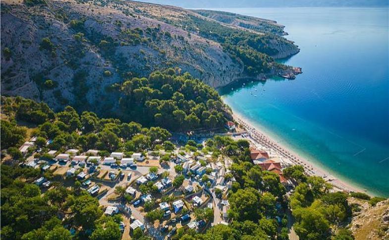 | naturistický camping zasazený do středomořské vegetace s ohromující oblázkovou pláží #vynikající lokalita v odlehlé zátoce nedaleko Bašky#dobré sportovní zázemí kempu#některé mobile home vzdálenější od pláže (-) |