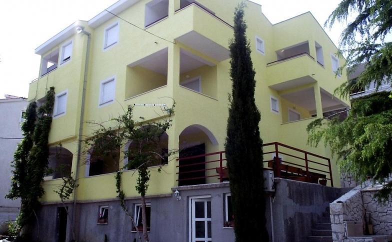 | Apartmány mají obývací část s vybavenou kuchyní pro vaření a stolování, sociální zařízení, SAT TV, balkon či terasu a jedno parkovací místo ve dvoře nebo na ulici zdarma. Klimatizace je za poplatek 5 EUR/apartmán/den. Ložní prádlo je v ceně apartmánu. Apartmán pro 3 osoby AP3 - má jednu 1lůžkovou ložnici a 2 lůžka v denní místnost. Apartmán pro 4 osoby AP4 - má jednu 2lůžkovou ložnici a 2 lůžka (rozkládací gauč) v denní místnosti. |