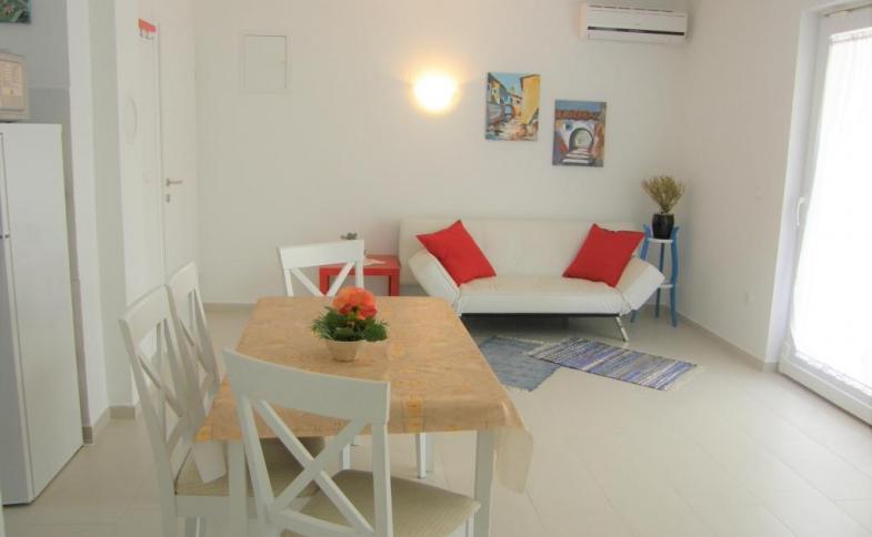 | Zrekonstruovaný apartmán se nachází v I. patře domu, který je vzdálený 650 m od pláže. Hostům je k dispozici zahradní mikrovlnná trouba, klimatizace (v ceně). Možnost pobytu s domácím zvířetem za poplatek 6 EUR/den (na vyžádání při rezervaci). Parkování u objektu. |