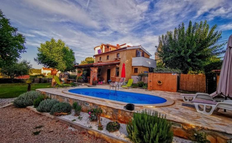 | Pěkně zařízená vila s bazénem, vhodná pro rodinu s dětmi, které se na zahradě zabaví na houpačce, prolézačce nebo na pískovišti. Klienti mohou využívat zahradní gril s posezením, lehátka a sluečník u bazénu, nebo klimatizaci a Wi-Fi (v ceně). Při předchozí domluvě je možný pobyt s pejskem (za poplatek 10 EUR/den). Parkování na pozemku. |