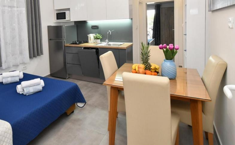 | klimatizace v ceně, lednička 1, mrazicí box 1, mikrovlnná trouba, varná konvice, klasický TV, satelit, rádio, Internet wifi v ceně, možnost kouření: ne |