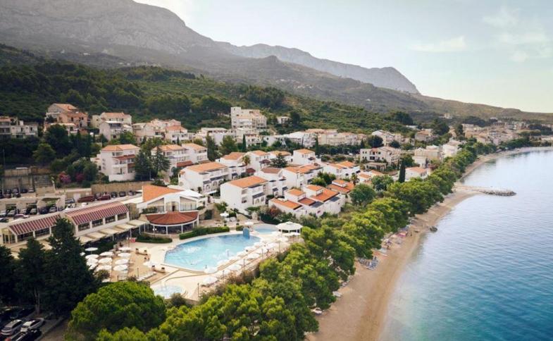 | Upravená hotelová pláž nesoucí známku Modré vlajky je ideální pro odpočinek rodin i párů. Pláž je skalnatá s malými štěrkovými zátokami. Nad pláží se nachází dlážděná a upravená část s lehátky a slunečníky a v pozadí je travnatá plocha v přírodním stínu borovic. Vstup do vody je pozvolný, povrch je štěrk a kameny. Pláž je vybavena sprchami, WC, převlékárnami. Je možné zapůjčit si zde za poplatek lehátka a slunečníky. WiFi na pláži pro hosty zdarma. |