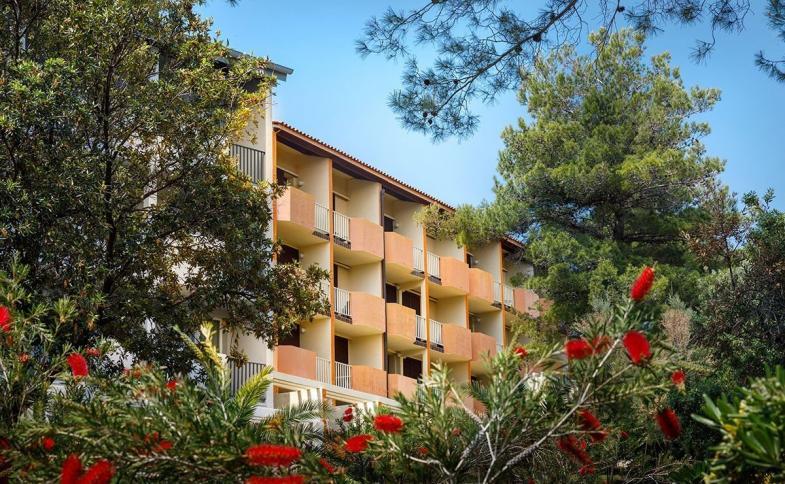 Komplex pěti třípatrových pavilonů San Marino resort hotelového typu je situován přímo nad oblíbenými písčitými plážemi poloostrova Lopar, cca 15 km od městečka Rab.