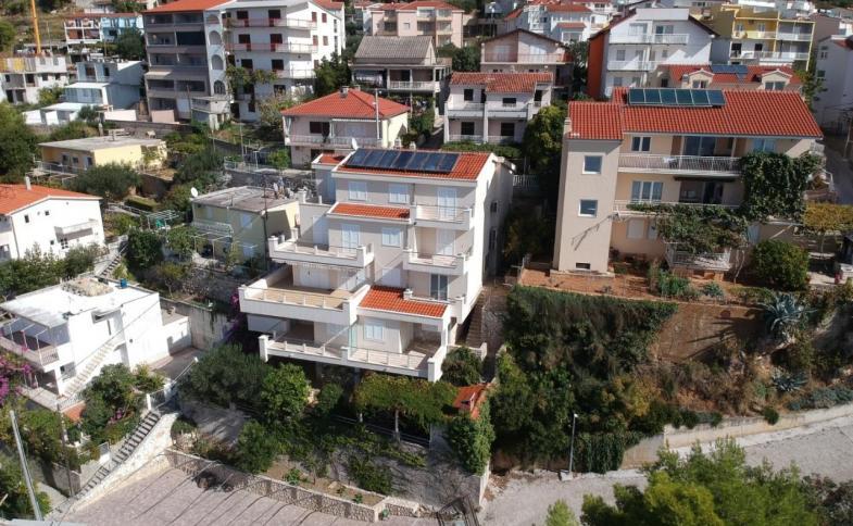 | Luxusní apartmánová vila kategorie **** se nachází přímo nad krásnou pláží s jemnými oblázky. Pláž je přístupná po schodišti přímo od domu. Všechny apartmány jsou orientované směrem na moře a ze všech balkónů je krásný výhled na moře. Vila je přístupná autem s možností parkování kousek od domu (zdarma) nebo v garáži přímo u domu (za poplatek). VYBAVENÍ: vila nabízí kvalitní ubytování v moderních apartmánech s klimatizací. Hostům je v přízemí k dispozici letní kuchyň s grilem, posezení pod pergolou, sprcha, parkování pro 2 auta přímo u domu a další místa cca 80 od domu, garáž pro 2 auta (za poplatek rezervace dopředu nutná) |