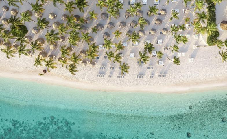 Písečná pláž Bavaro se nachází přímo u resortu, lehátka a slunečníky zdarma.
