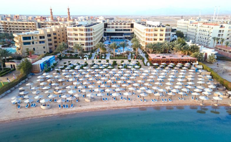Přímo u písečné pláže přibližně 21 km severně od letiště Hurghada. Staré centrum Hurghady (Dahar) přibližně 11 km a nové centrum (Sakkala) asi 15 km (hotelová doprava za poplatek).