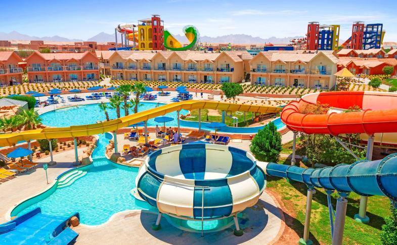 Rozlehlý hotelový komplex cca 700 m od pláže s jedním z největších aquaparků v Hurghadě s více než 30 skluzavkami, umělou řekou a obřím vlnovým bazénem - zábava pro děti i dospělé. Hotel nabízí pro své hosty bohaté bufetové stravování, sportovní a relaxační vybavení, komfortní ubytování ve stylových bungalovech a rodinných pokojích a shuttle bus zdarma na pláž.