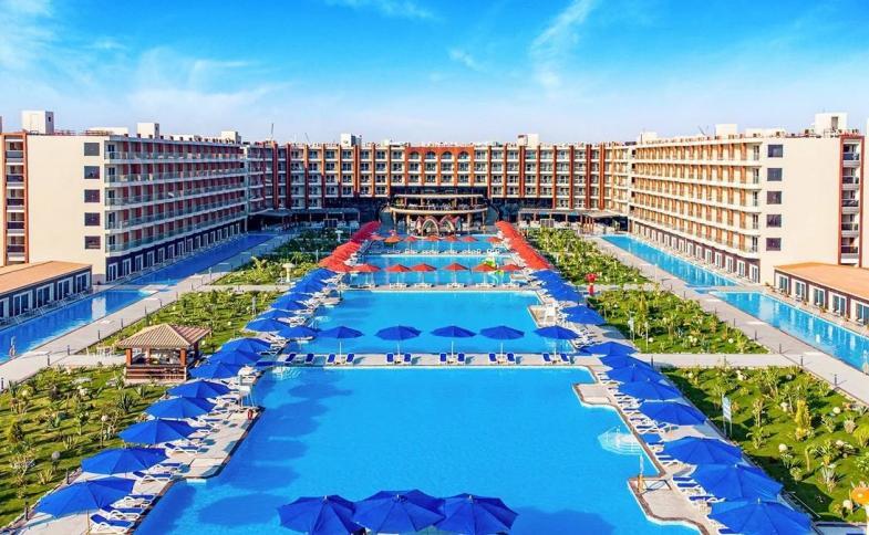 Nově postavený pětihvězdičkový hotel přímo u písčité pláže. Resort nabízí rozsáhlé vybavení pro všechny věkové kategorie. Hotel je skvělou volbou pro ty, kdo si chtějí užít pohodový odpočinek i zábavu. Více než tucet bazénů a aquapark se skluzavkami zajišťují vodní zábavu od úsvitu do soumraku, zatímco nedaleká písečná pláž láká ty, kteří sní o relaxaci u moře. Pro chvíle relaxace jsou ideální i atmosférické lázně s vířivkou, saunou, parní lázní a hammamem. Večery zpestřují zábavné show a představení a stojí za to navštívit i tematické restaurace a bary, kde můžete příjemně zakončit den.