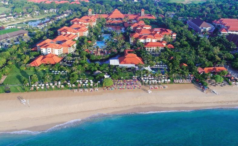 Hotel postavený v tradičním balijském stylu se nachází v Nusa Dua na jižním okraji ostrova. Nusa Dua je považována za nejlepší plážovou lokalitu na Bali a zároveň je vzdálena od hlučných letovisek. Na letiště cca 12 km, do Kuty (s širokou nabídkou obchodů, restaurací, barů a další zábavy) cca 15 km - dojezd taxíkem cca 15 USD. V blízkosti hotelu se nachází 18jamkové golfové hřiště a nákupní centrum Bali Collection s širokým výběrem restaurací. |