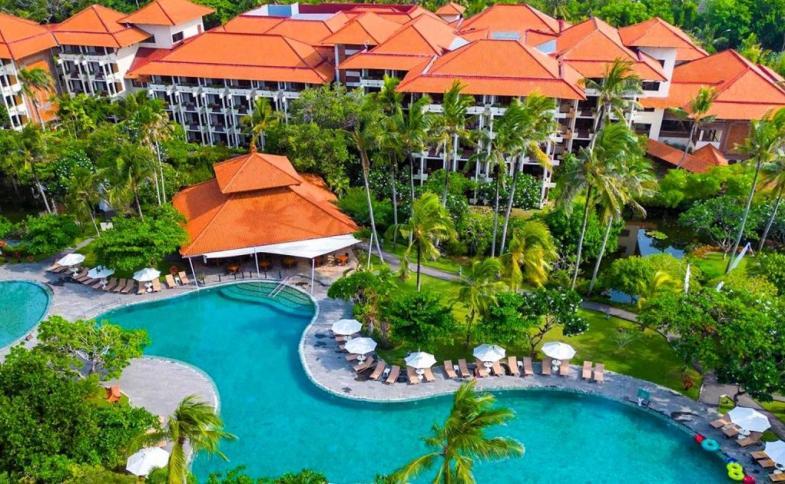 Ayodya Resort Bali byl postaven uprostřed tropické zahrady,